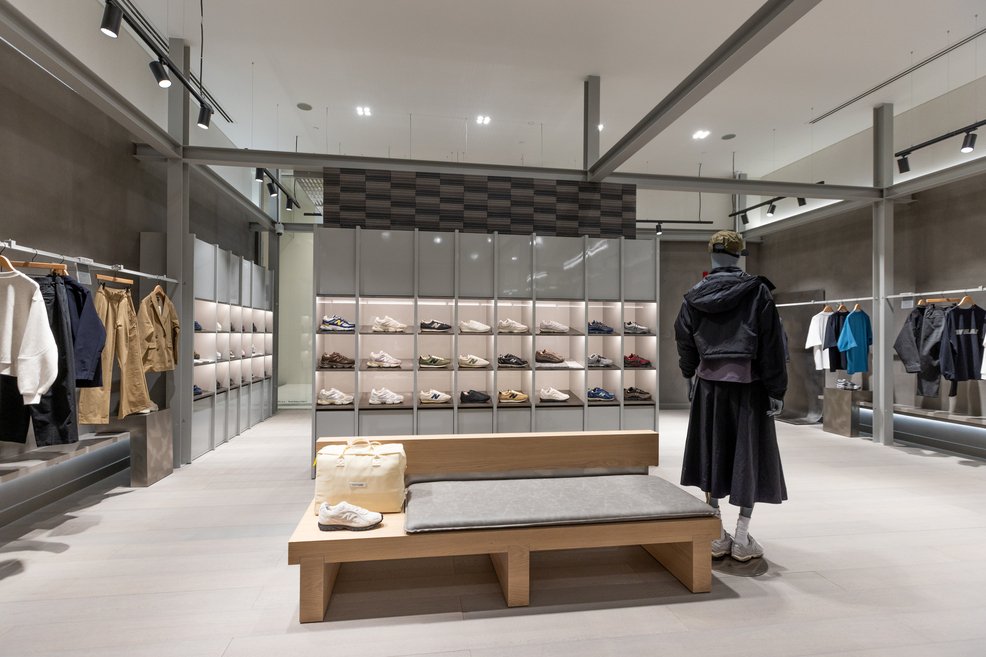 Spanning 228 square meters, the store is purposefully designed to reflect New Balance’s heritage through a modern lens. A tonal grey palette, refined architectural textures, dim, considered lighting, and understated music create a calm, contemporary retail environment where every element is curated to let the product and craftsmanship speak for itself.